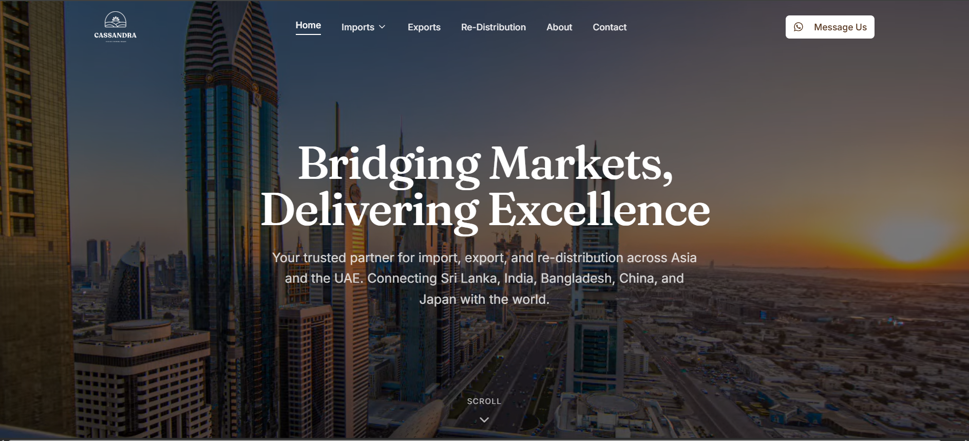 Dubai-based trading company specializing in import, export, and re-distribution across Sri Lanka, India, China, Bangladesh, UAE and the wider region