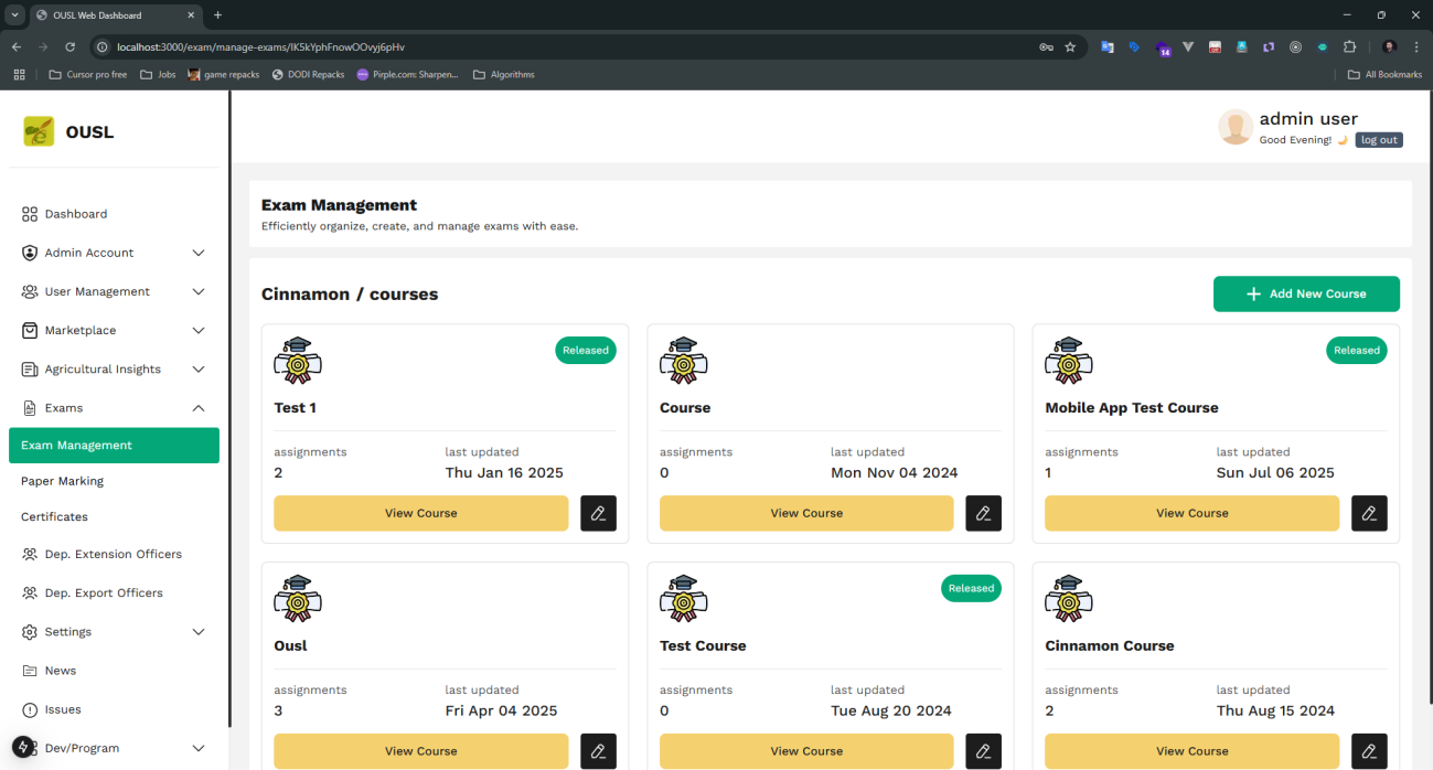 - •User Management: Comprehensive control over all user types including farmers, agriculture officers, examiners, and administrators with role-based access control