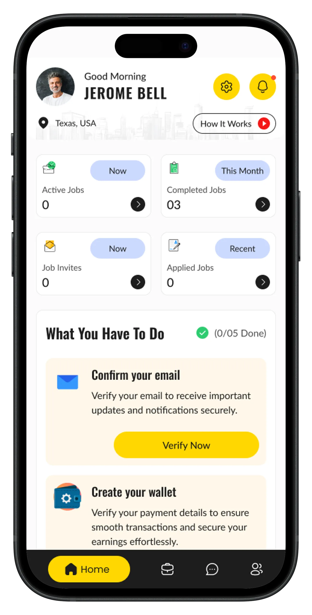Can join the platform, create the wallet, pass background checks, prepare their profile, quote for jobs, get hired, and get paid.