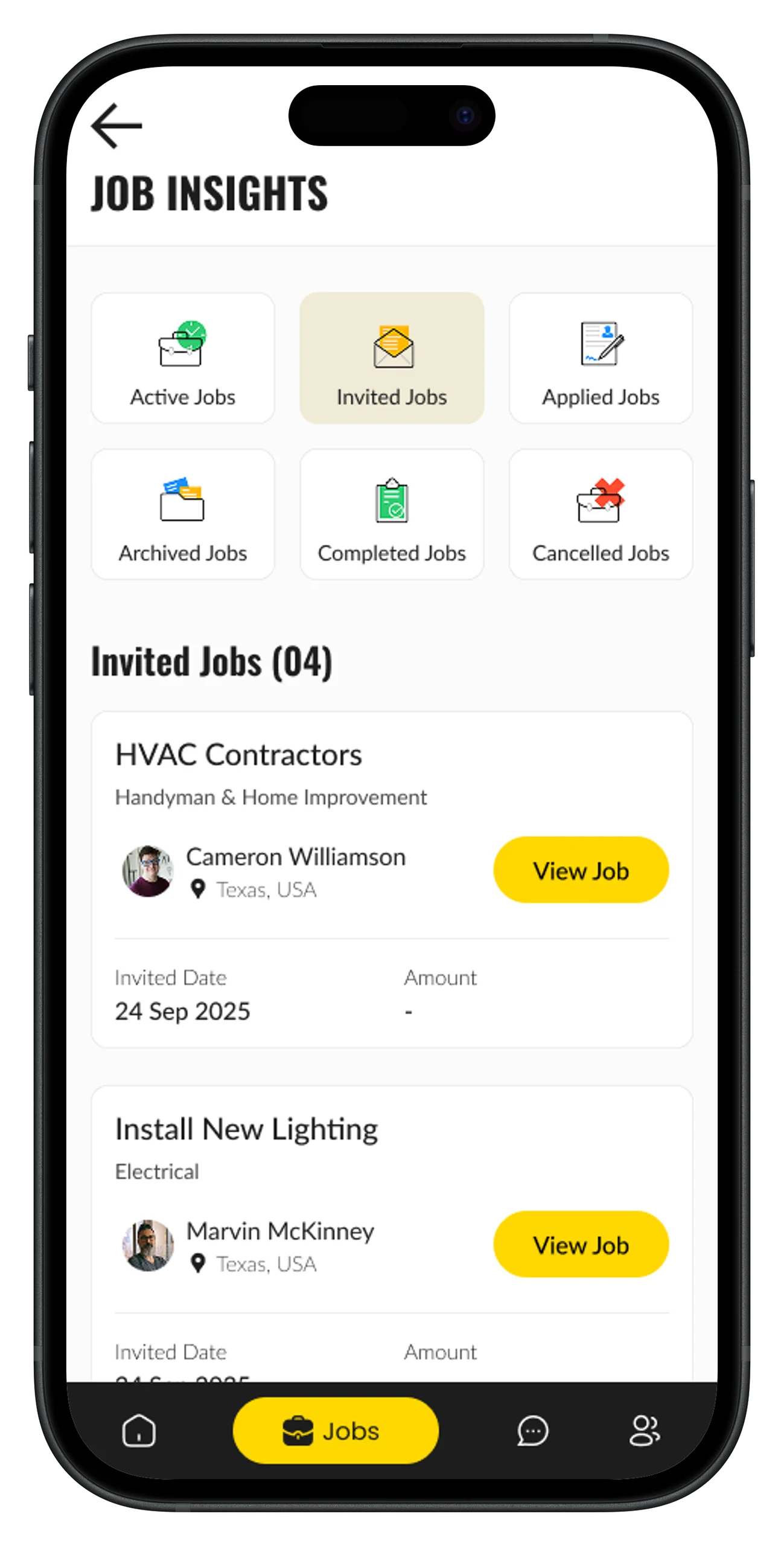 - •Receive job invites based on proximity and service