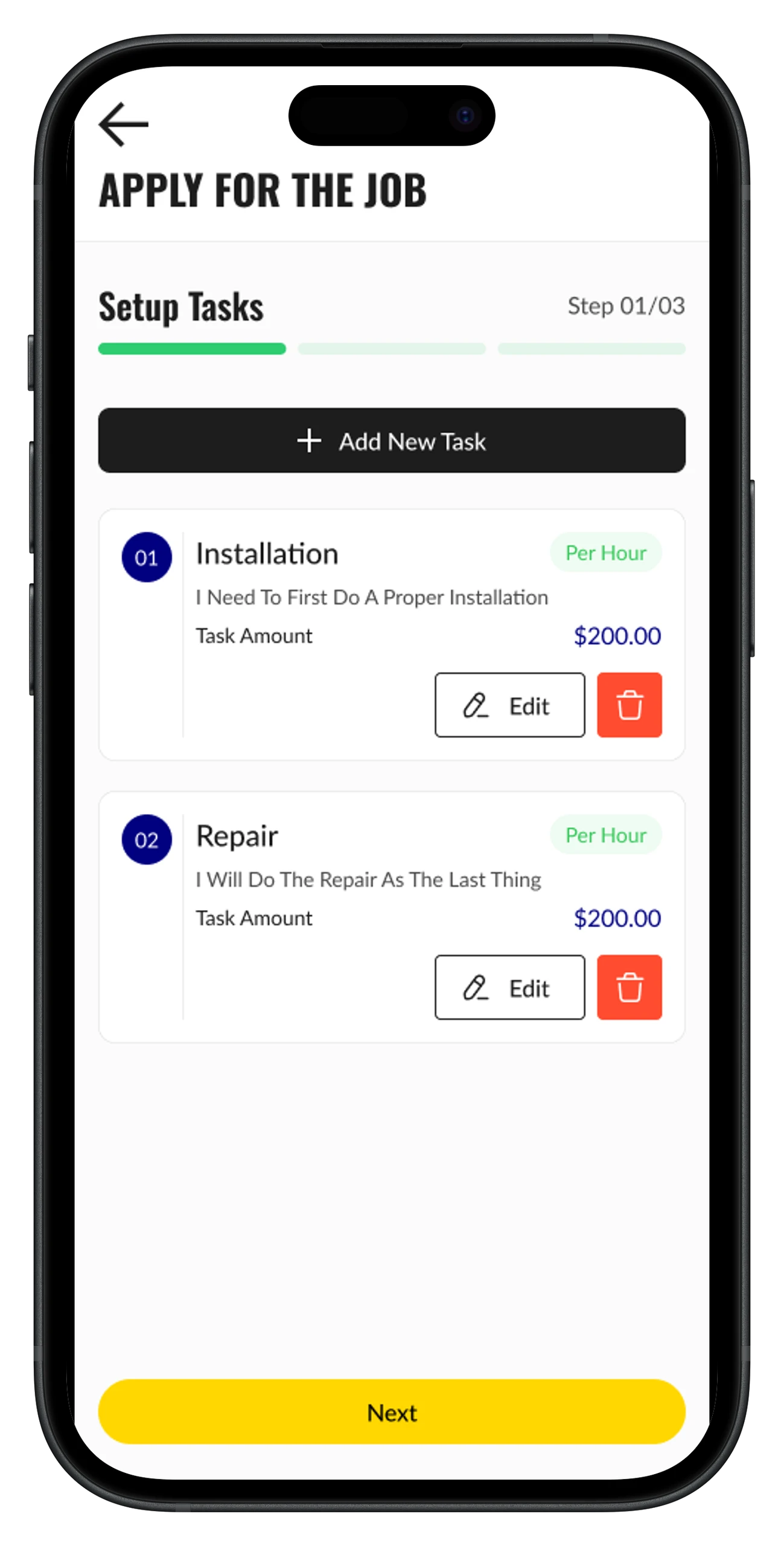 - •Dashboard with pending/ongoing jobs and earnings